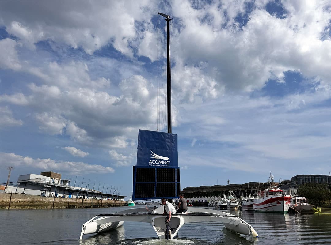 So What, ACCWing’s trimaran, will be equipped in spring 2026 with a textile 40 m² wing that can rotate 360° around its non-stayed mast, a pre-series version of the latest developments.